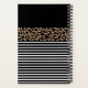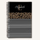 An elegant black leopard animal print and black and white striped monogram notebook for your office or back to school. Add your name and initial between on the front. Designed for you by Blackberry Boulevard.
