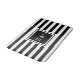 Elegant personalised initials monogram bath mat featuring a black and white striped pattern with your initials set in a black bordered square with a classic white text. Designed by Thisisnotme©