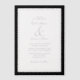 This design features the bride's and groom's names as the main focus of the design with a black, grey and white border. Personalised names using script font typography creates a perfect fusion of modern and elegance. A simple custom minimalist wedding invitation design with modern, black, white and grey monogram. Matching wedding stationery items and other wedding invite formats are also available.