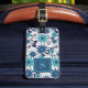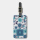 Elegant Monogram Blue Turquoise Flower Pattern Luggage Tag