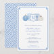 This design features a single letter monogram flanked by blue and white ginger jar vases and blue and white watercolor pumpkins and a "Greek Key" border and pattern backer. Watercolor elements were originally handpainted by me. I've set the template up for a baby shower but all of the text fields are customisable to your needs. You can change the contrast colour of the Greek Key border on the front and the pattern on the back (shown here as a pale blue) to any colour you like by entering the design tool (underneath the text customisation area, click to "customise further") then changing the background colour on each side.