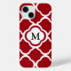 Elegant Monogram Cranberry Red Quatrefoil Pattern iPhone 15 Case