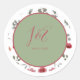Elegant Monogram Burgundy Roses & Sage Green Classic Round Sticker