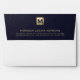 Elevate your correspondence with our Elegant Monogram Business Envelope. The white envelope is designed with a sophisticated touch, featuring a blue leather print back flap that adds a touch of elegance. The brushed gold monogram initial logo takes centre stage on the back flap, accompanied by your company name and essential details below in golden classic typography. This unique design combines professionalism and style, making it perfect for estate planners, attorneys, and advisors. Whether sending documents or invitations, this envelope sets the tone for your brand image and leaves a lasting impression. Present yourself with confidence and distinction using this refined envelope for your business communications.