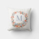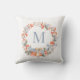 A timeless holiday pillow featuring an elegant watercolor Christmas wreath in soft dusty blue, red, and peach, delicately framing a personalised monogram in modern typography.