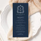 Elegant Monogram Crest Navy Blue Wedding Menu