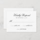 An elegant wedding RSVP cards features a simple classic black white design with a monogram crest on the reverse.