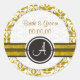 Elegant Monogram Damask Save The Date Wedding Stickers. Make a lasting impression with this Elegant Monogram Damask Save The Date Wedding Stickers . There is a stripe along the sticker and a circle with an elegant monogram on it. The beautiful gold yellow and white damask pattern background adds style and finesse. Designed by Olympia. Classic and sophisticated yet contemporary at the same time. Design available in several colours. Personalise it with your text. You can change text and use it as Thank You stickers or any other use you think.