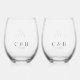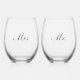 Elegant Monogram Date Mr and Mrs Stemless Wine Glass