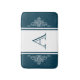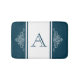 Elegant monogram design with floral decoration and stripes on blue and white background