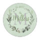 An elegant watercolor foilage wreath in olive shading where in the centre you can customise it with a name and letter on a light minty green backdrop. Stylish trendy vibes.