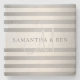 Elegant Monogram Faux Silver Gradient Grey Stripes Stone Coaster