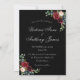 Simple yet chic, over the top elegant. Black background with grey monogram. Beautiful bold bouquets of burgundy, blush and red frame two corners of this lovely invite. The bride and groom names on the front are in a light grey. On the reverse of this beautiful invitation is a simple invite with names in script and wedding information in typography. Just gorgeous. 100% customer satisfaction guaranteed with “Zazzle”.