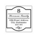 Design features an elegant decorative frame design with monogram initial and custom return address text and scroll accent.