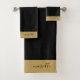 Personalised elegant monogram black gold script name, bathroom towel set with gold borders. Refresh your bathroom decor with a minimalist typographic style.