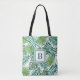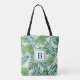 Elegant Monogram Green Botanical Palm Leaves Tote Bag.