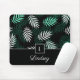 Elegant Monogram Green Leaves Botanical Pattern Mouse Pad.