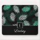 Elegant Monogram Green Leaves Botanical Pattern Mouse Pad