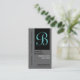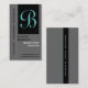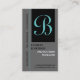 Elegant monogram plain business cards, featuring your monogram in an elegant font in turquoise on black grey/grey background. Professional looking business cards with a sober yet elegant layout great for a manager, designer, an investor, realtor, salesman, engineer, accountant, financial consultant, insurance, publisher, translator, advertiser, clerk and more. tba