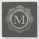 Elegant Monogram Initial Black Silver Monogrammed Stone Coaster