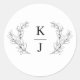 Elegant Monogram Initial Botanical Leaf Wedding Classic Round Sticker