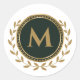 Elegant Monogram Initial Faux gold Green Classic Round Sticker