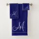 Elegant Monogram Initial Navy Blue Bath Towel Set