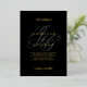 An elegant trendy light grey monogram initials with real shiny gold foil typography in stylish modern theme black wedding invitations.