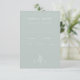 This wedding RSVP card features a stunning light silvery sage green colour with crisp white font. The minimalist monogram with a line art drawing of a leaf adds a touch of natural beauty and sophistication to the overall look.