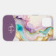 A feminine elegant liquid ink design in pink, purple, turquoise and gold. Personalised with monogram and name.