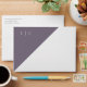 Front of envelope is dark purple in the left corner creating an interesting and modern design. that contrast with the white monogram of the bride and grooms first letters.