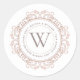 Elegant Monogram Modern Classic Round Envelope Seal. Beautiful stickers with grey text on ivory white adorned with a lovely single letter monogram in a copper blush coloured circular frame. Personalise with your wedding details. We invite you to visit our store, Austen & Grace, to view more of our designer wedding invitation suites. Please contact us if you require extra matching products or any assistance via the contact button or email directly at contact@austenandgrace.com
