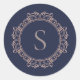 Elegant Monogram Modern Classic Insignia Sticker Seal. Beautiful stickers with grey text on midnight Navy Blue adorned with a lovely single letter monogram in a copper blush coloured circular insignia frame. Personalise with your monogram initial. We invite you to visit our store, Austen & Grace, to view matching products and more. Please contact us if you require any assistance.