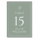 Elegant Monogram Modern Script Sage Green Wedding Table Number