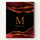 Monogram Name Burgundy Rust Agate Gold Black Notebook. Beautiful abstract burgundy rust garnet coloured agate art with glitter gold highlights against black. Personalise the monogram initial and name in elegant orange gold coloured text. We invite you to visit our Zazzle store, Simon & Grace, for matching products and more. Please contact us if you require any assistance.