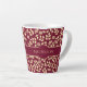 Elegant Monogram Name Leaf Daisy Pattern Burgundy Latte Mug