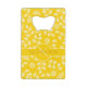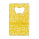 This contemporary design features an initial letter monogram and name with a pastel yellow daisies and leaf art pattern over a yellow background. Personalize both text, remove one or the other or click customize to select a font style, size, and color you prefer. The change will take place on both sides. It can make a personalized gift for a newly wed couple or a housewarming party.