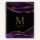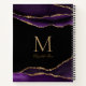 Elegant Monogram Name Purple Agate Gold Black Notebook