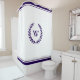 Classic navy blue laurel wreath monogram on white. Blue stripes at the top and bottom. Elegant and impressive.