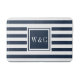 Elegant Monogram Navy Blue White Stripe Bath Mat