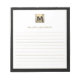 Elevate your law office with our Elegant Monogram Logo Lined Notepad. Featuring a brushed gold monogram initial at the top and your law office name below, presented in timeless golden classic typography on a clean white background. The design is framed with a sophisticated black texture print border, adding a touch of distinction. This notepad is perfect for jotting down notes, ideas, and important information, making it a practical and stylish addition to any attorney's workspace. Ideal for law offices, law firms, and attorneys seeking to enhance their professional image and organisation.