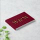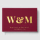 Elegant burgundy red wedding guest book featuring your choice of real gold, silver or rose gold foil, your monogram initials in large classic serif typography, your first names and your wedding date. Personalise with your photo on the back and a title on the spine.