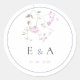 Elegant Monogram Pink & Blue Floral Wedding Classic Round Sticker