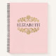 An elegant pink and gold notebook for your office or back to school. Add your name between the gold floral flourish on the front and an initial on the back. Designed for you by Blackberry Boulevard.