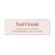 Elegant light pink return address label with your name in large gold lettering.