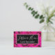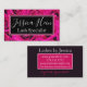 An elegant chic business card design for your eyelash speciality company. Hand-lettered script typography overlaid on a double pink border frame with a hot pink lush rose background. The additional line below for your title or company name. Multiple lines on the back to personalise with all your contact details. A beautiful yet simple design in pink and black that looks professional and modern.