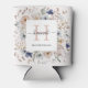 Elegant Monogram Pretty Beige Blue Flowers Floral Can Cooler