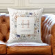 Elegant Monogram Pretty Beige Blue Flowers Floral Cushion