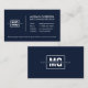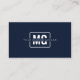 This elegant navy blue professional business card features a two or three letter personalised monogram inside a rounded corner square, representing either a business or personal brand with custom text for a slogan or tagline across it. Beside the monogram neatly positioned on the right, is the cardholder’s name, designation and contact details, including email, phone and social media handles. The reverse side showcases the monogram in a larger size, centred on the card, enhancing its minimalist elegance. The simple and sophisticated layout embodies luxury and modernity.