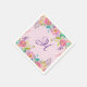 This trendy and elegant floral napkin features elegant purple hand lettered script with your own monogram initial between lovely bouquets of pink, gold, blue, lavender and purple flowers on a light pink background. Perfect for any spring or summer party, get together, ladies tea, celebration or wedding!